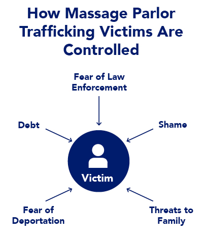 Human trafficking in massage parlors is often the result of a deeply manipulated sense of "choice". Learn more about how victims are controlled so that you can take action to help eliminate massage parlor trafficking.